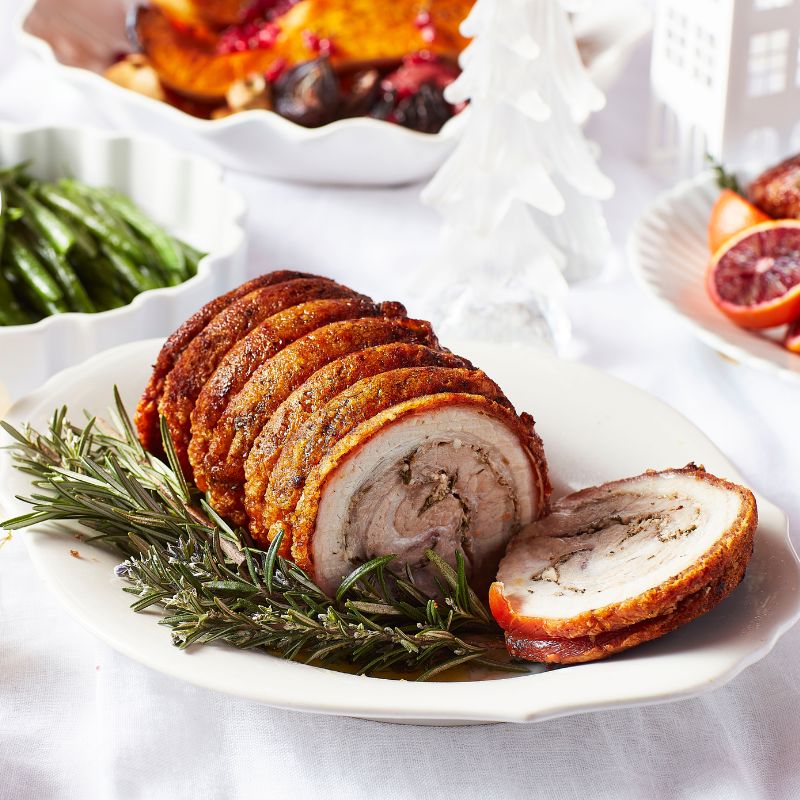 An effortless festive roast, prepared with precision by our master butchers. This free-range pork belly is hand-tied and filled with a classic blend of white pepper, garlic, oregano, and fennel, then carefully scored for the perfect crackling.